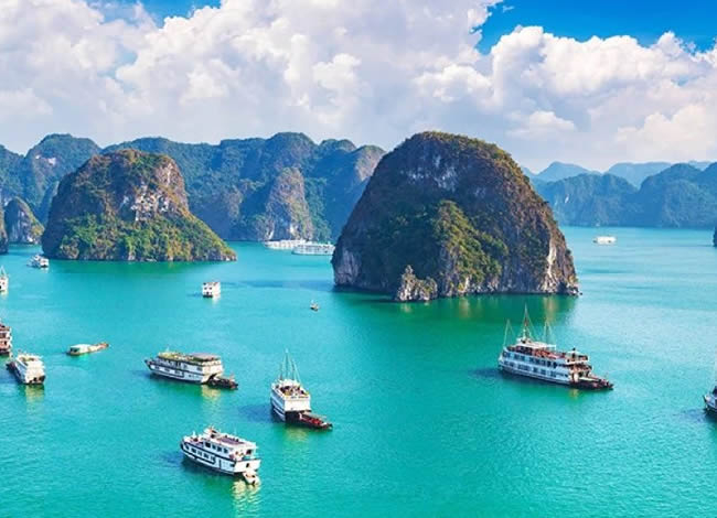 早餐后,乘車前往巡州島度假區(qū)、欣賞海岸風(fēng)光,后乘越南特色紅木游船漫游世界八大自然遺產(chǎn)之一的“海上桂林” —下龍灣 (游覽時間約 4H) (在 1500 多平方公里的海面上、聳立著 3600 多座大小不一、千姿百態(tài)的喀斯特地貌的山石、更以其“海美、山幽、洞奇”三絕而享譽(yù)天下) ——觀狗爬山、香爐山、斗雞山等數(shù)不勝數(shù)的風(fēng)景盡收眼底,再從斗雞石出發(fā)游覽下龍灣的精華景點之一【迷宮仙境】 。午餐安排于船上進(jìn)行用餐,下龍灣亦有小漁船如影相隨,把酒臨風(fēng),去國懷鄉(xiāng)之憂蕩然無存,在天海一色中的游船上大快朵頤的美妙感覺在您的全身悄悄蔓延。午餐后乘坐【快艇】前往【海上天坑】,抵達(dá)洞口后換成小木船進(jìn)入洞內(nèi) ,海上天坑是一個 360 度皆為垂直絕壁的封閉海灣 ,空靈幽閉。湖水清澈見底 ,水平如鏡,在四面高聳徒峭山崖的環(huán)抱中,仿佛給人一種與世隔絕的感覺。游完后前往越南最浪漫、最漂亮的島嶼—【天堂島】, 島上活動 1-2 小時。細(xì)白的沙灘上可以玩各種沙灘游戲 (游戲道具自備) ,在指定區(qū)域還可以游泳,登上島嶼的山頂俯視下龍灣海上桂林全景,拍攝您心意的美照,隨后坐船返回碼頭下船 ,告別上帝賜于越南最好的禮物-下龍灣。前往【下龍灣海灘】綿延近千米的下龍沙灘,椰樹成林,碧浪白沙,海水明澈,碧藍(lán)天空一望無際,與海水相融相接,長長的海灘宛若一條白色綢帶蜿蜒在海岸邊。沙灘的愜意安然,赤足漫步在海邊上能感受到與浪花熱情的玩耍邀請。晚上可自由閑逛酒吧街,如果你是個Party控,這里絕對是個能讓你盡情奔放的好地方!這里匯聚了當(dāng)?shù)氐娘L(fēng)俗習(xí)慣、傳統(tǒng)文化,樸素中讓人深深感受到獨特的心靈文化。這就是越南的人間煙火氣,游客們還可以在此體驗“越南版淄博燒烤”--【瓦片燒烤】,用烤爐“現(xiàn)燒炭火”和“一片紅瓦”是它的終極武器!有肉,有越南啤酒,有越南燕窩水,這大概就是最幸福的事~~!!特別安排【觀光車環(huán)游下龍灣】,深入了解下龍當(dāng)?shù)厣睢?br/>
